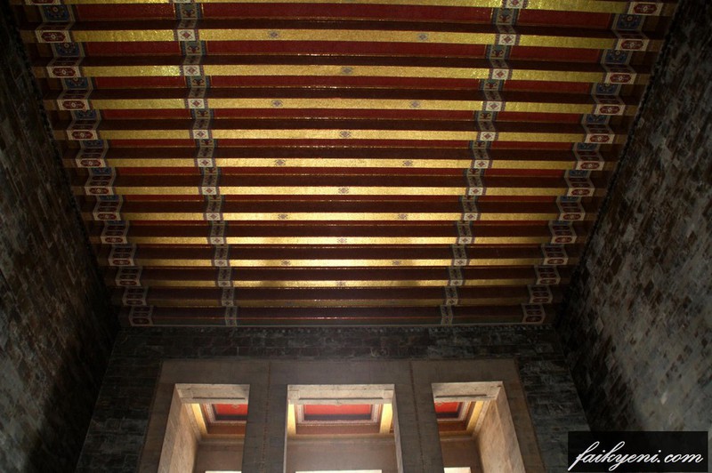 Şeref holünün 27 kirişten oluşan tavanı ile yan galeri tavanları mozaik ile süslenmiştir. Şeref holünün yüksekliği 17 m olup, yan duvarlarında altışardan 12 adet bronz meşale bulunmaktadır. Mozole yapısının üstü, düz kurşun çatı ile örtülüdür.