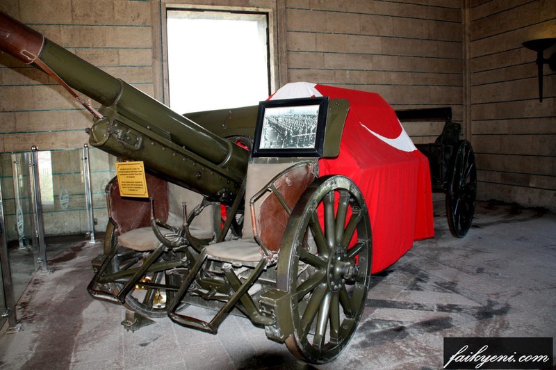 Kule içinde Atatürk'ün naşını 19 Kasım 1938 tarihinde İstanbul Dolmabahçe Sarayı’ndan alarak Sarayburnu’nda donanmaya teslim eden top arabası sergilenmektedir.