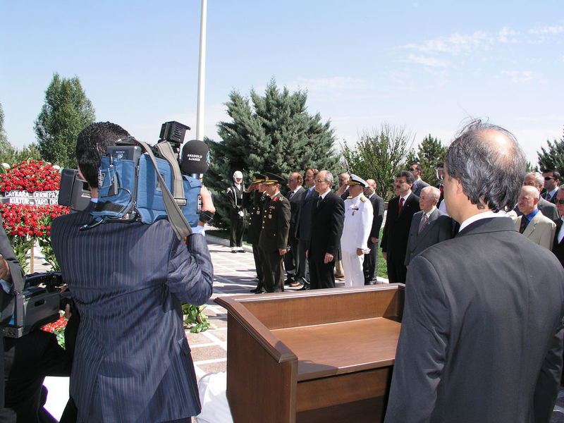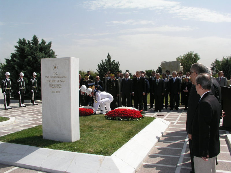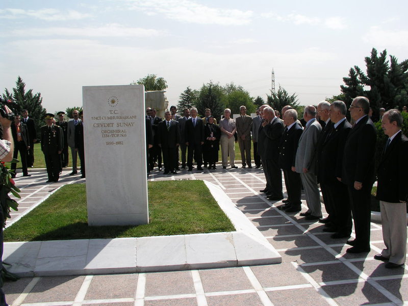 Türk asker ve devlet adamı, Türkiye Cumhuriyeti'nin beşinci cumhurbaşkanı, Türk Silahlı Kuvvetleri'nin 12. Genelkurmay Başkanı Cevdet Sunay'ın ölüm yıldönümü münasebetiyle 22 Mayıs 2002 tarihinde Ankara Atatürk Orman Çiftliği Devlet Mezarlığı’nda yapılan anma töreninden görüntüler.